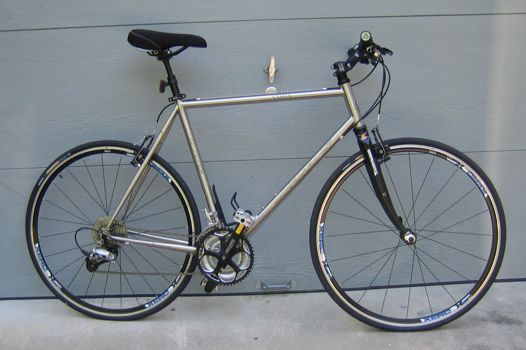 I was hooked by the polished Reynolds double-butted stainless steel frame and carbon fiber fork. The bike was lively and fast. It didn’t take long, though, to learn that cross bike means it combines the worst attributes of a road bike with the worst attributes of a mountain bike, with few of the benefits of either. The derailleurs were finicky, I had trouble adapting to the clipless pedals after 40 years of riding with toe clips, and the straight bar gave me numb hands after only a few miles of riding.