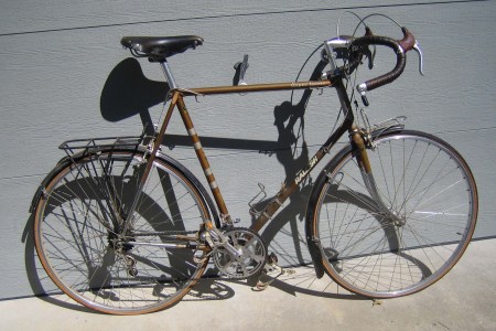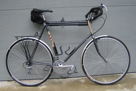 In 1985 I was working in Boston, sitting in a corner office on the top floor of a building overlooking Back Bay and dreaming of biking coast to coast. I had dropped my membership in the Narragansett Bay Wheelmen and sold both my Raleigh Professional and a custom built, all Campagnolo, road bike. For the cross-country trip I bought a Fuji Tourer frame and built it for the long haul. It has a long wheelbase, comfortable geometry, and more braze-ons than you can imagine. It even has clips on one chainstay for spare spokes.