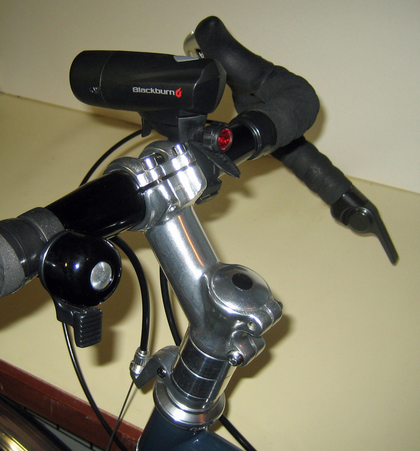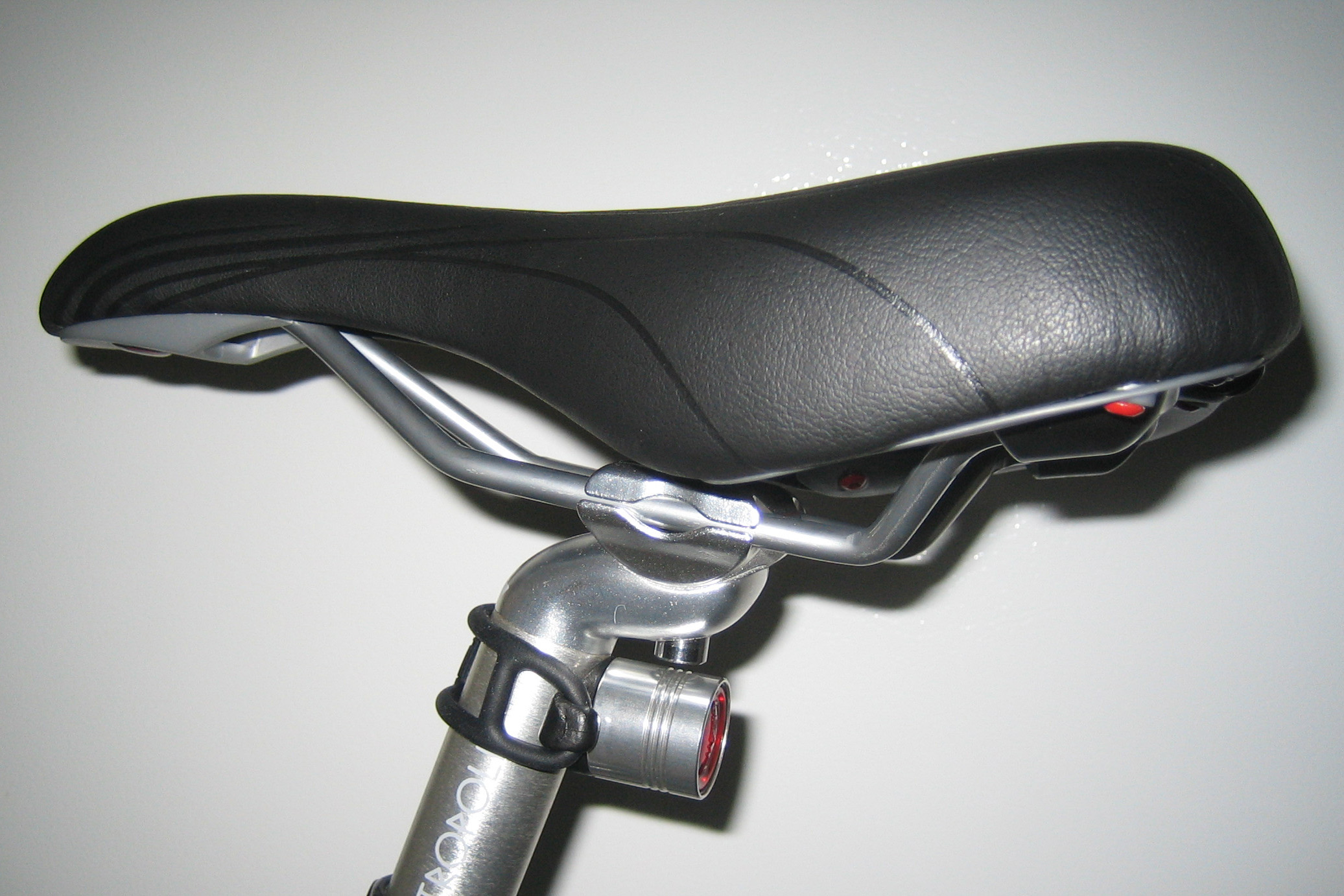 TaillightFinally, I decided to lower my saddle from 109% of leg length to 106%, so I replaced the 155mm wide Specialized gel saddle with a 175mm model, and added a tiny Lezyne Femto taillight.