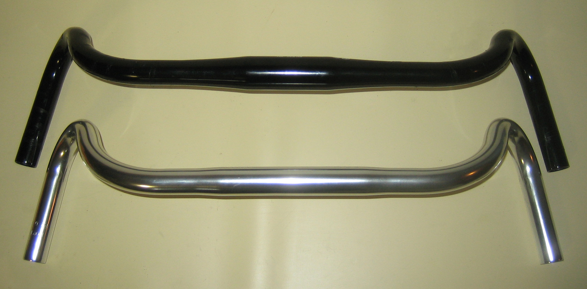 Bar EndsSo I was pleasantly surprised when I went to the Soma on-line store, to see that they now offer the same bend in polished aluminum, with 26mm clamp diameter and 53cm width, as well as 56. Here is a photo comparison of the new Soma Portola bar with my long-time favorite (40 cm) GB Tourist Bend. Bar v, Bar